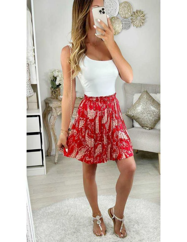 ☆Jolie jupe plissée rouge imprimé cachmere, voilage doublé et taille élastique