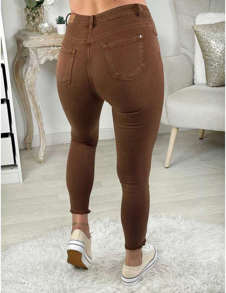 ☆ Jeans slim choco et taille haute se fermant par un zip et un bouton , 2 poches à l’avant, 2 poches à l’arrière,il se porte moulant.