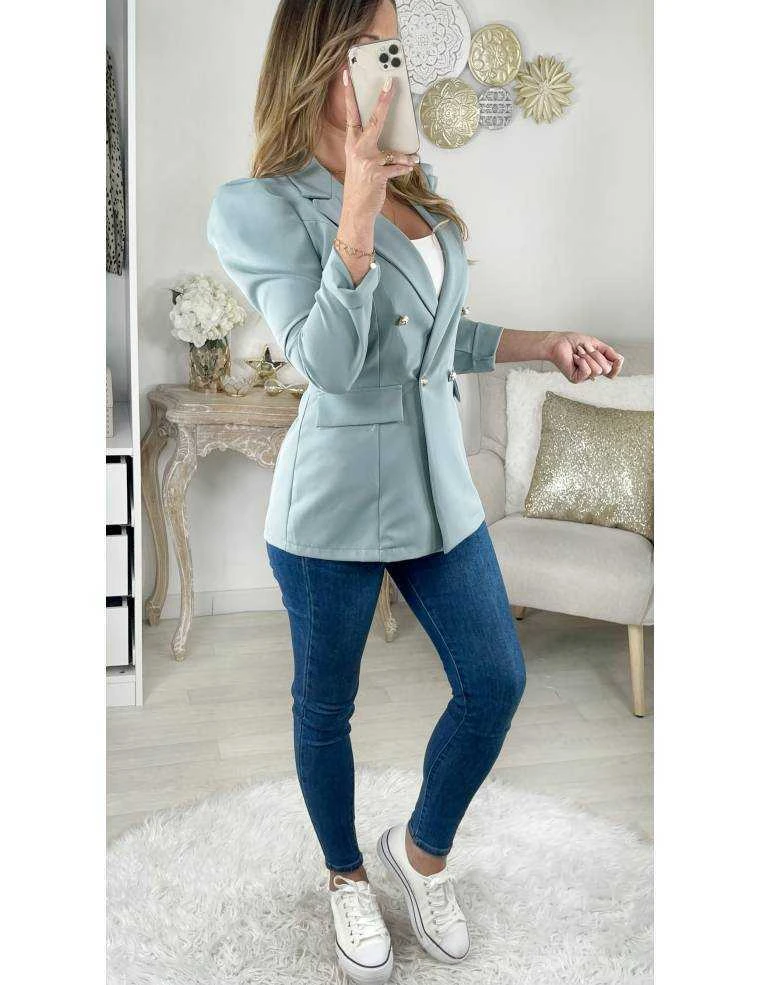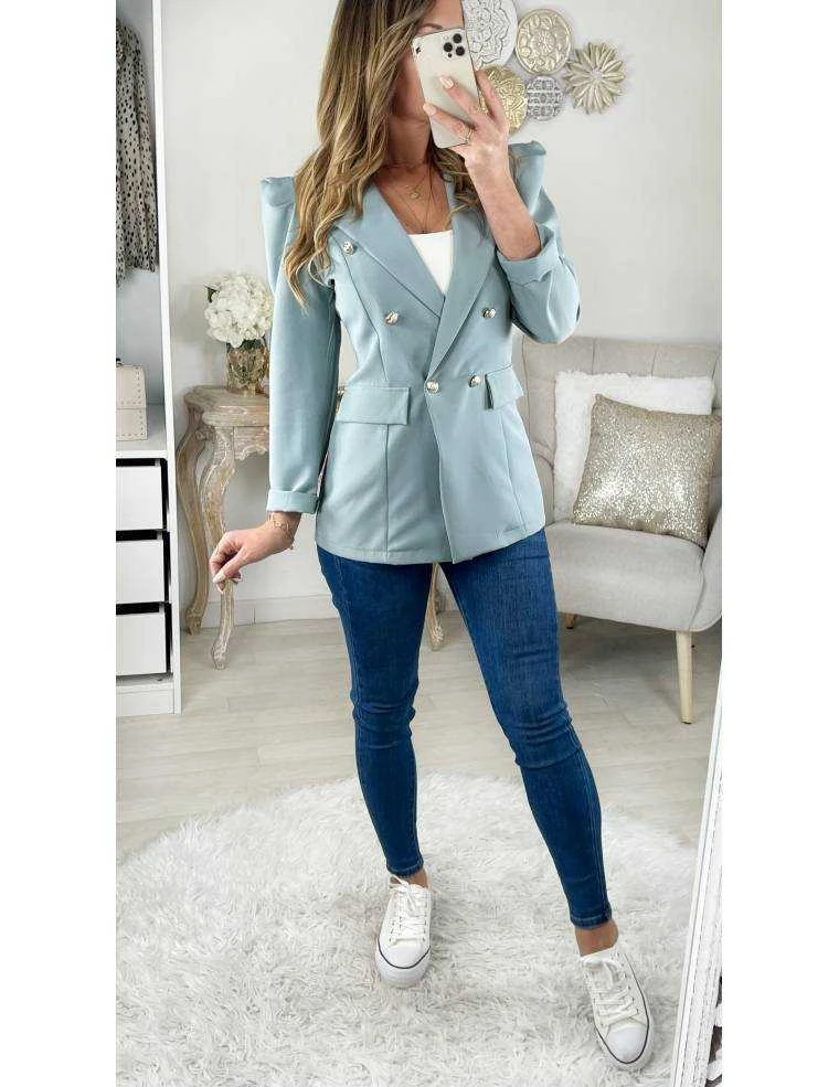 Mon Joli Blazer Bleu Ciel épaulé « boutons Dorés »