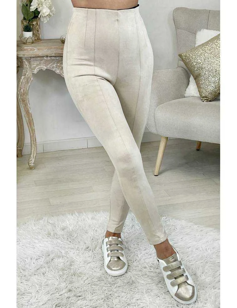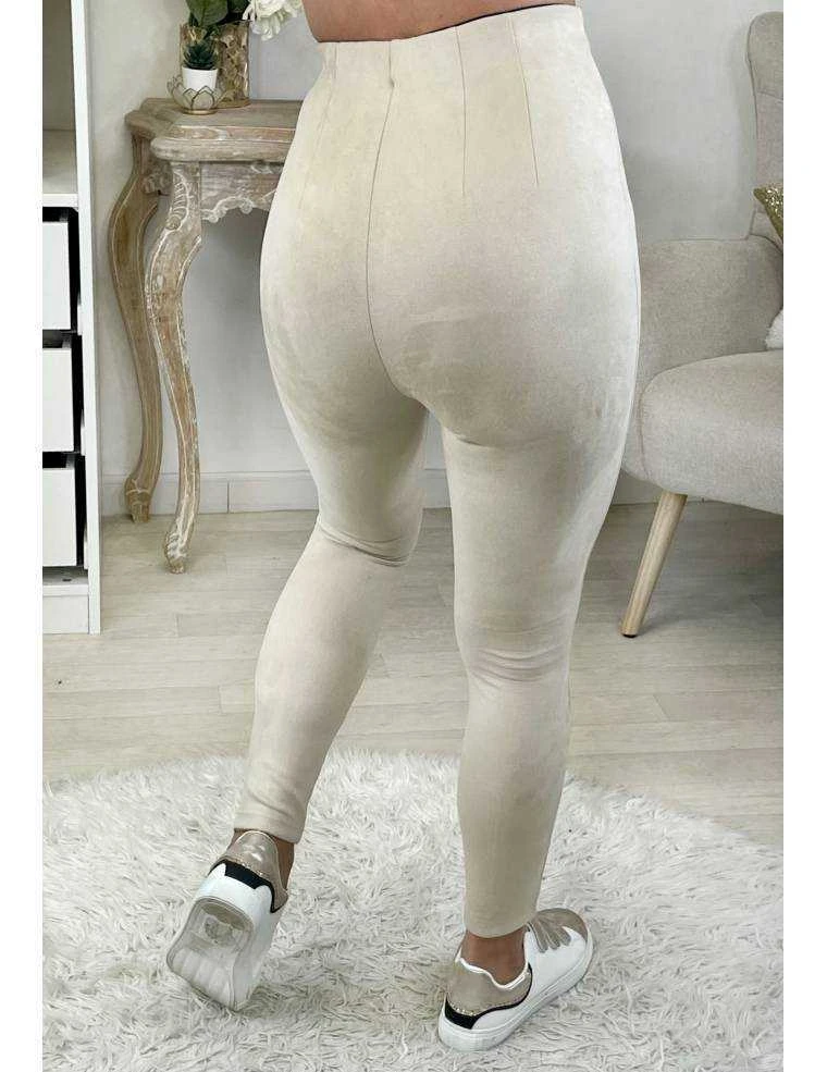 ☆ Legging en tissu beige style suédine, large ceinture élastiquée et taille haute, il se porte très près du corps.