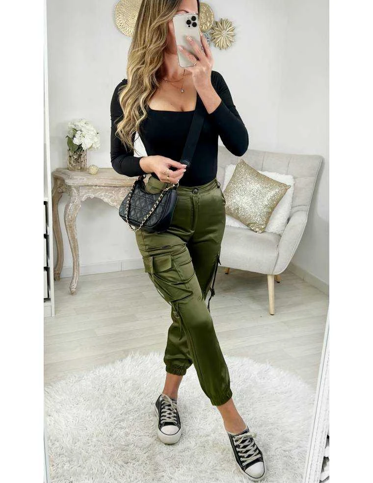 ☆ Deux poches sur les cuisses et resserré sur le bas, il se porte ajusté.
