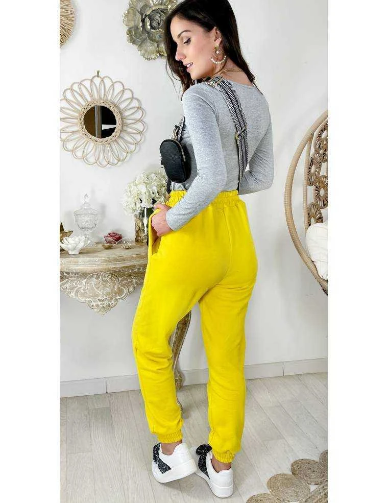 Ensemble jogging jaune en tissu molleton et agréable, gilet zippé manches longues à capuche et pantalon taille élastiquée