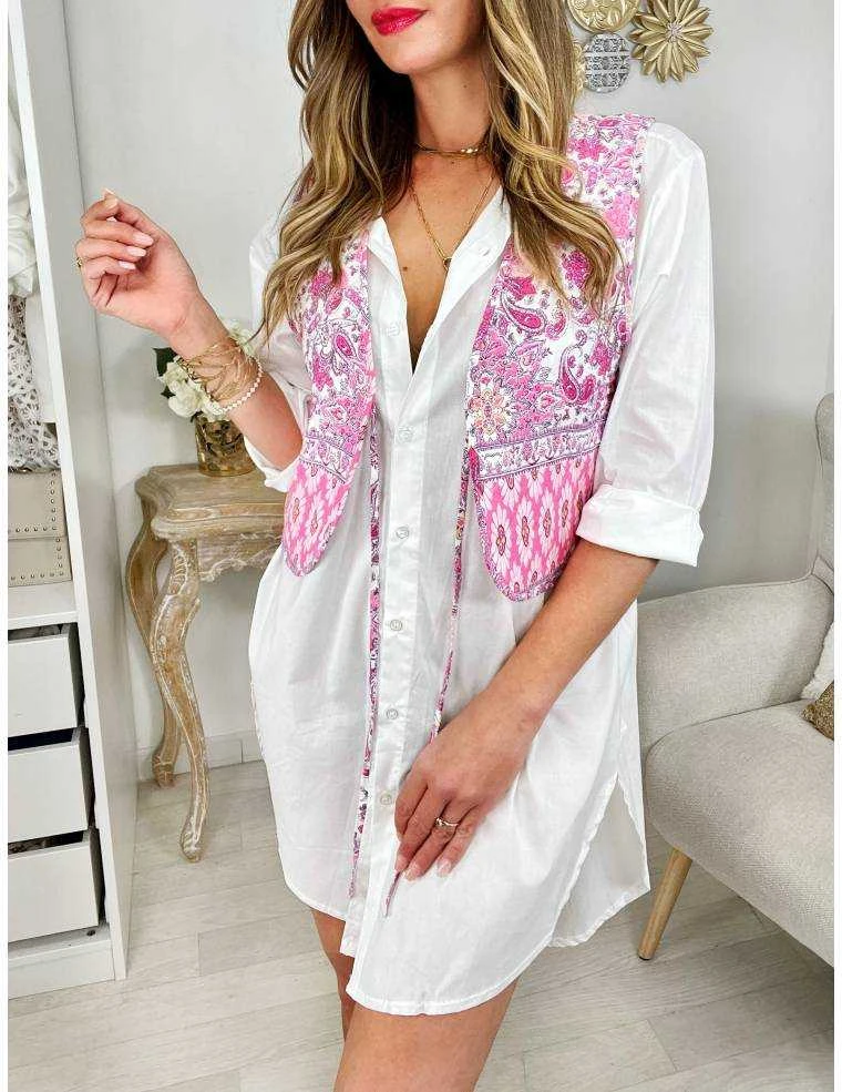 ☆petit gilet sans manches, il se ferme par un lien à nouer sur le devant, imprimé cachemire rose, « effet capitonné » , il se porte droit.