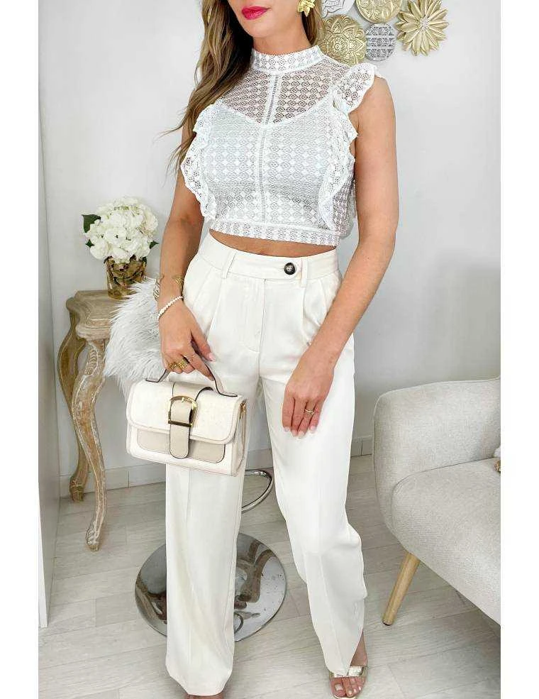 ☆ Pantalon droit beige,se ferme par un zip et un bouton, deux poches, il se porte droit.