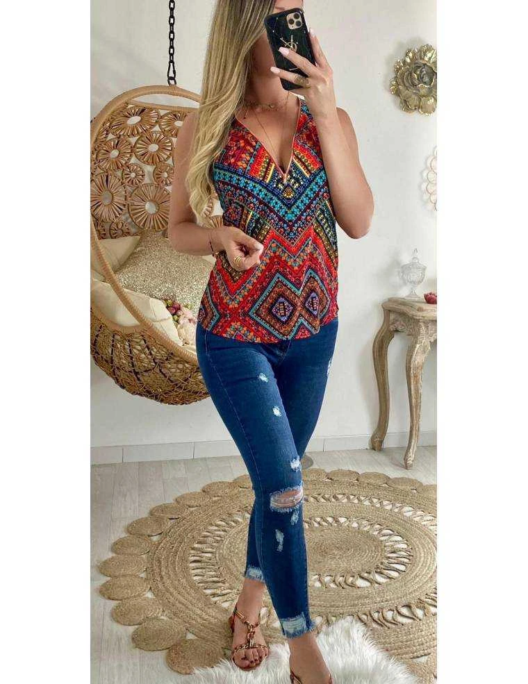 Mon Top Imprimé Rouge Ethnique « col Zippé »