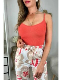 ☆Petit top en tissu côtelé corail,fines bretelles, il se porte court et ajusté.