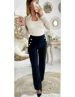 ☆Petit top en tissu côtelé noir, manches courtes et col v en dentelle, il se porte ajusté.