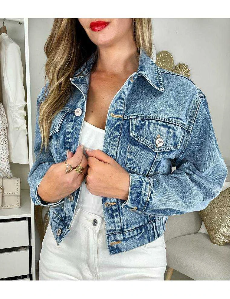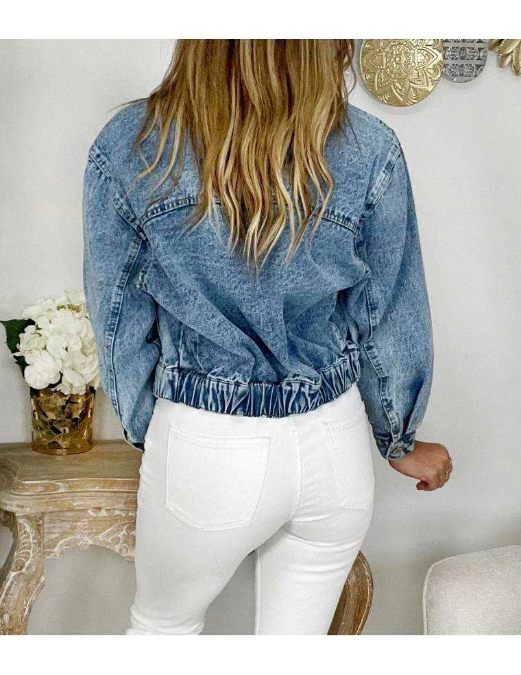 ☆Veste en jeans courte,taille élastique, manches longues, elle se porte loose. la tendance de l’année !!!